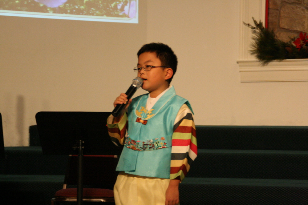 | ▲최윤환 목사의 손자인 최영민(열린문장로교회) 군이 애국가를 독창했다. |